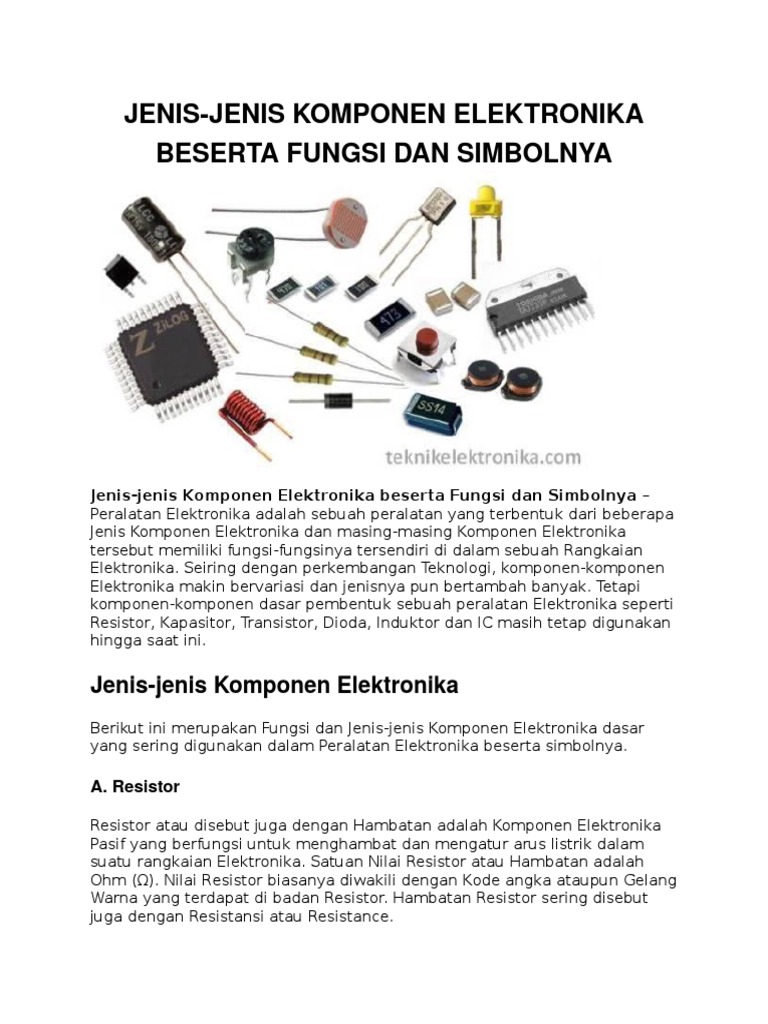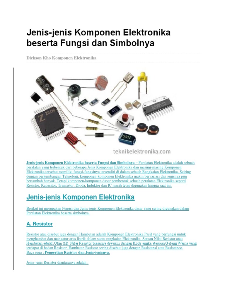 Ini adalah komponen-komponen dasar elektronika pembentuk alat-alat elektronik yang ada di rumah kita Mengenal Komponen Elektronika Part 2 Link. BAB I KOMPONEN DASAR ELEKTRONIKA A. Menerapkan dasar-dasar kelistrikan b.