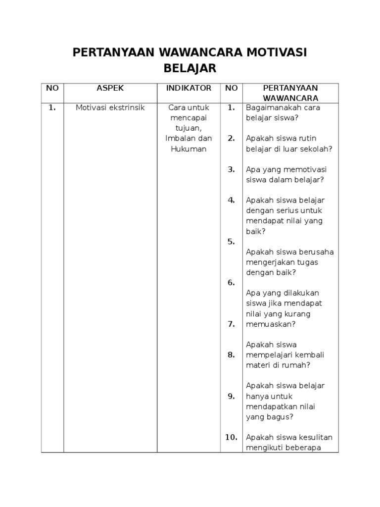 Pertanyaan Wawancara Motivasi Belajar