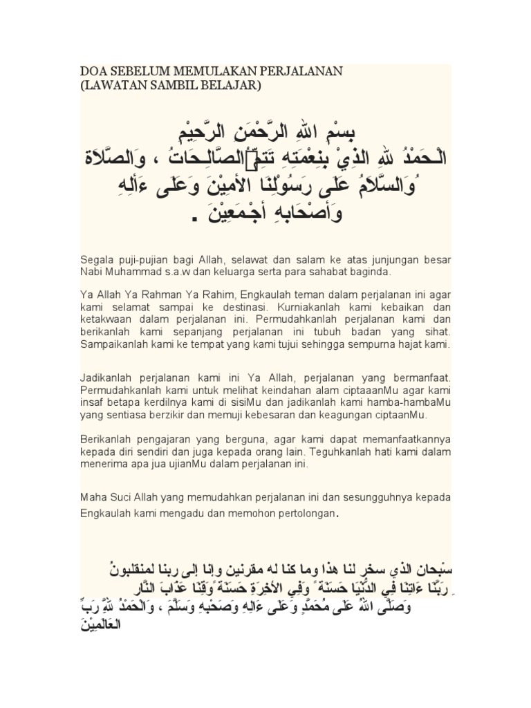 Doa Sebelum Memulakan Perjalanan Lawatan Sambil Belajar