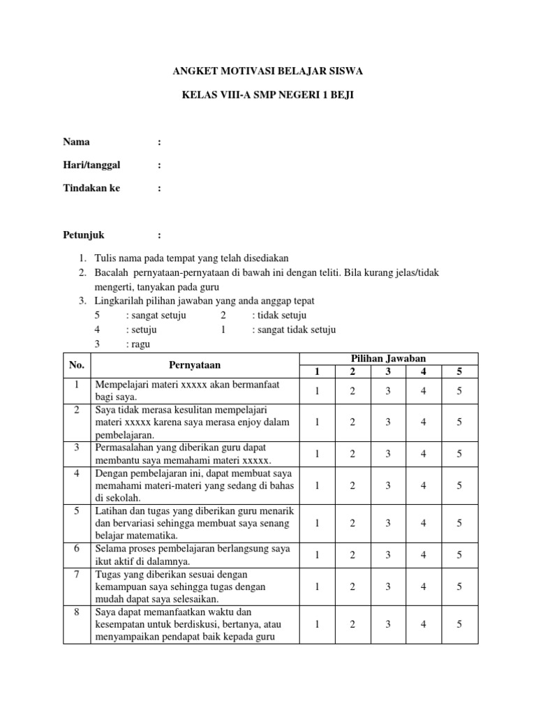 Contoh Angket Motivasi Belajar Kumpulan Soal Pelajaran 5