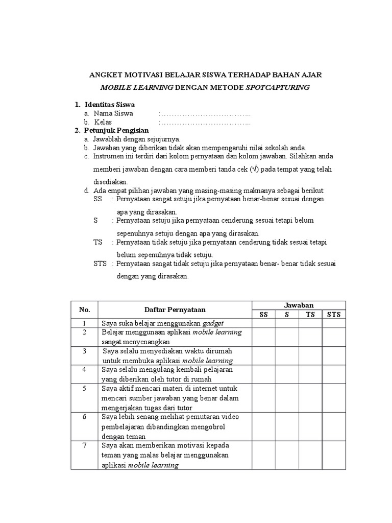 Angket Motivasi Belajar Pdf