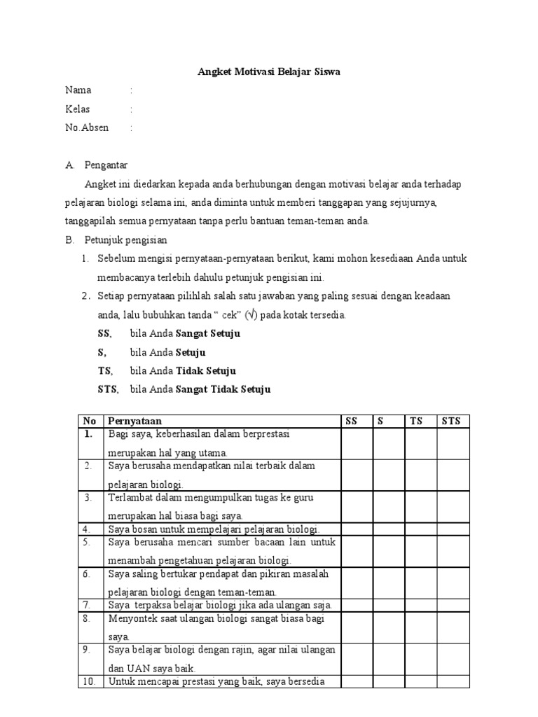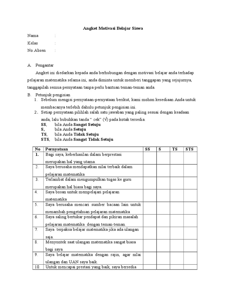 Angket motivasi belajar pdf. Saya sampai di sekolah. Siswa perlu diperkuat terus menerus. Description Download Angket Motivasi belajar Comments.