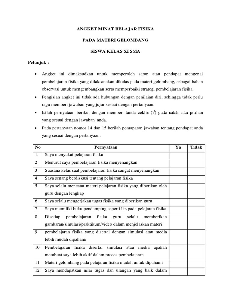 Contoh Angket Motivasi Belajar Fisika Kumpulan Soal Pelajaran 5