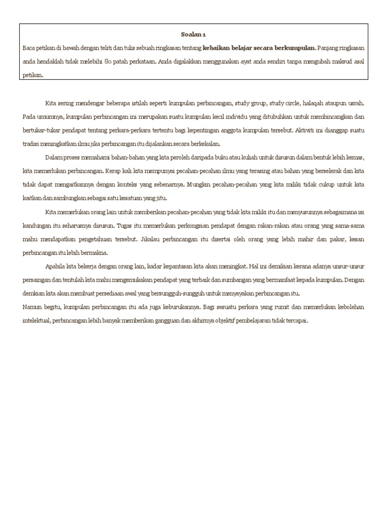 Berkumpulan Panjang Ringkasan Anda Hendaklah Tidak Melebihi 80 Patah Perkataan Anda