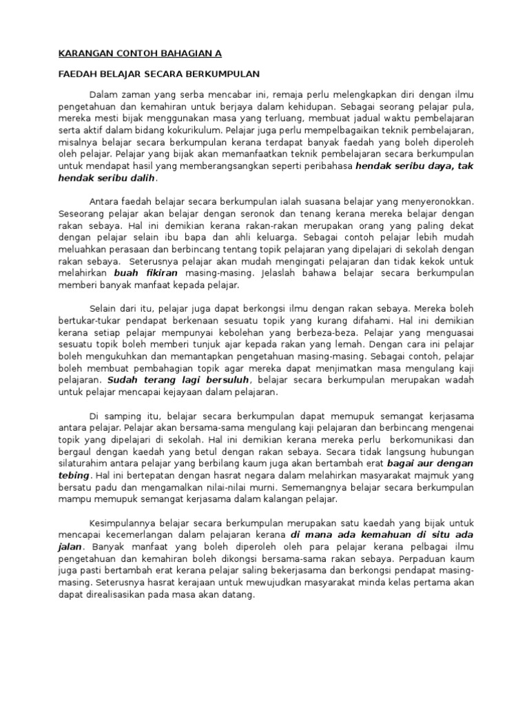 Contoh Karangan Faedah Belajar Secara Berkumpulan Contoh Cute766